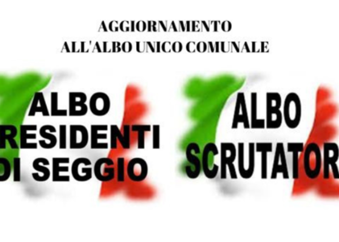 Il Sindaco invita gli elettori interessati a presentare la domanda di iscrizione all'Albo dei Presidenti di seggio elettorale e/o all'Albo degli Scrutatori di seggio.