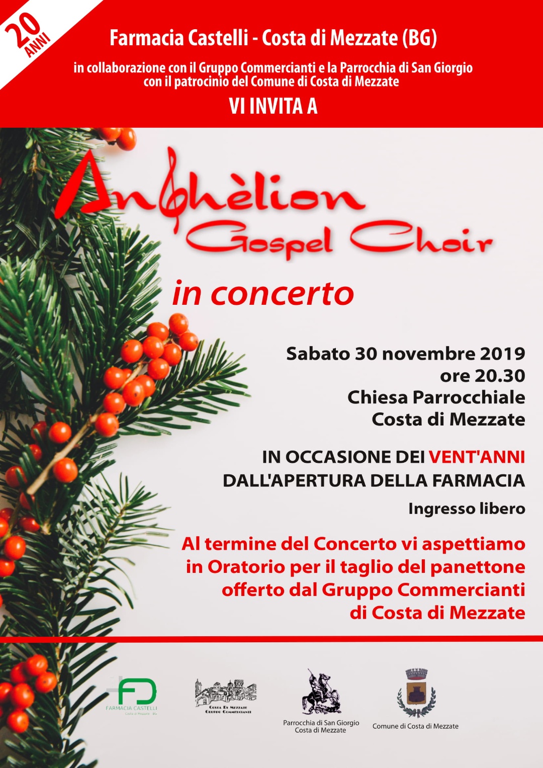 Concerto Gospel- Sabato 30 Novembre ore 20.30 con Anghelion Gospel Choir, presso la Chiesa Parrocchiale di Costa di Mezzate.