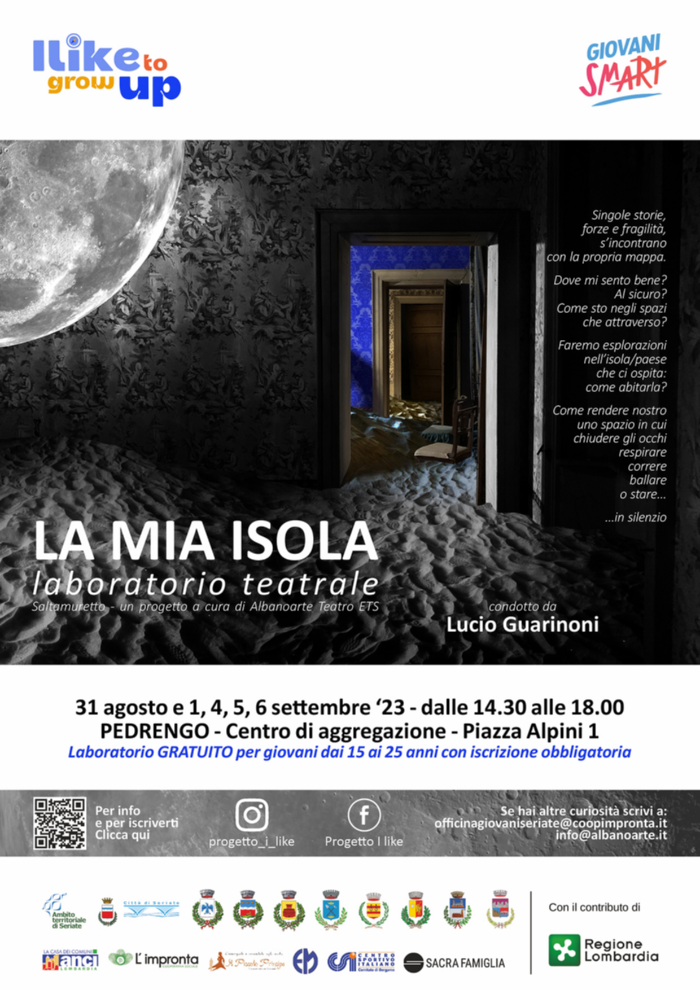 "Saltamuretto" è un laboratorio teatrale gratuito rivolto a tutti i giorni (età 15 - 25 anni) dei comuni dell'Ambito territoriale di Seriate.