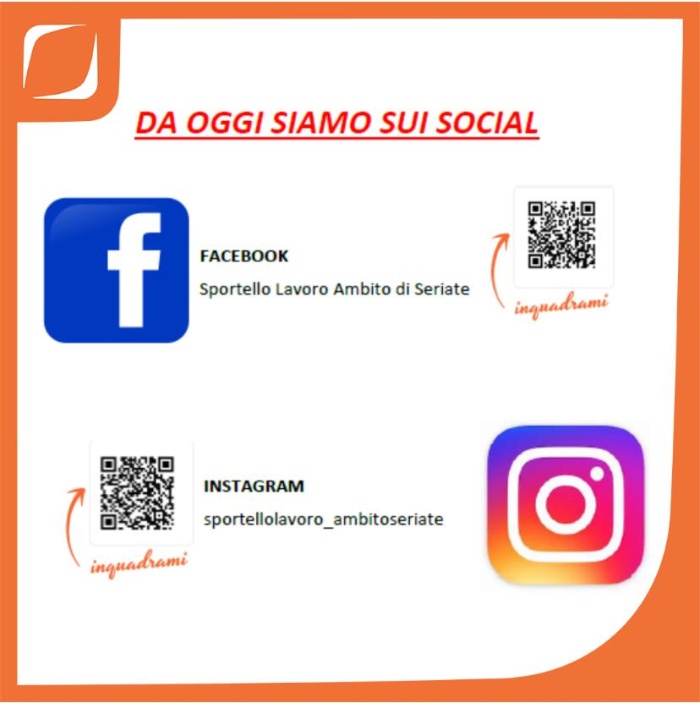Da oggi puoi conoscere i servizi e le opportunità dello sportello lavoro anche sui suoi canali social di Facebook e Instagram.