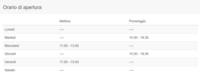 - il pomeriggio, dalle 14:30 alle 18:30, nei giorni di martedì e giovedì