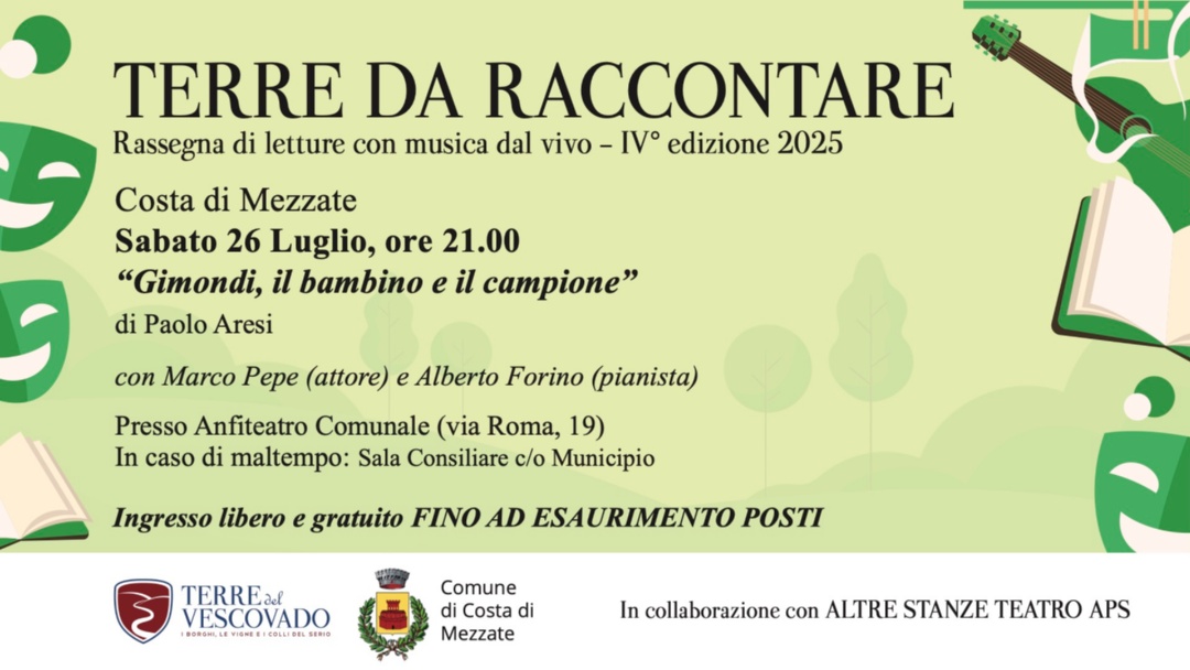 Descrizione Lo spettacolo di stasera è confermato per le ore 21:00 e si terrà al chiuso, in Sala Consiliare, presso il Municpio.