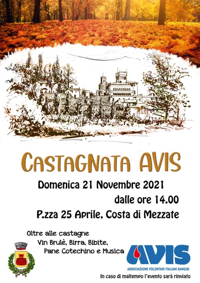 Castagnata della sezione AVIS locale organizzata per domenica 21 novembre, dalle ore 14:00, in Piazza XXV aprile.