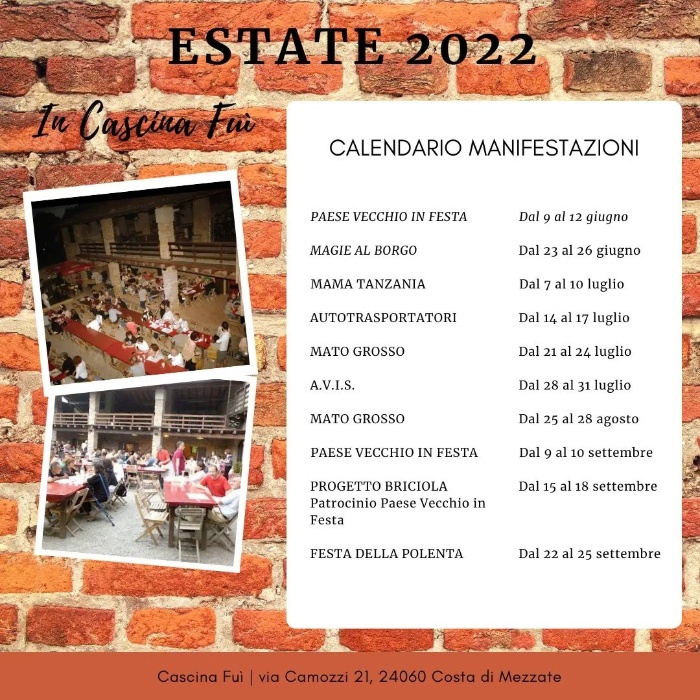 In allegato è possibile scaricare il calendario delle feste in Cascina Fuì in programma per l'estate 2022.