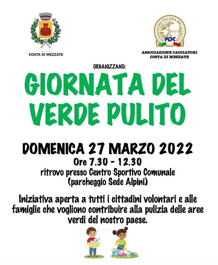 L'associazione nazionale cacciatori organizza per domenica 27 marzo 2022 la giornata del verde pulito.