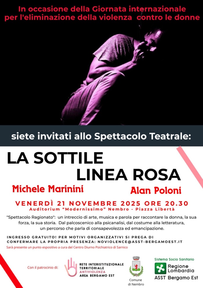 In occasione della Giornata internazionale per l'eliminazione della violenza contro le donne, vi invitiamo allo spettacolo teatrale