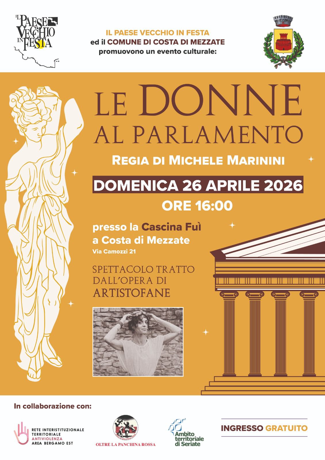 L'Amministrazione comunale e l'associazione Il Paese Vecchio in Festa promuono uno spettacolo teatrale tratto dall'opera di Aristofane.