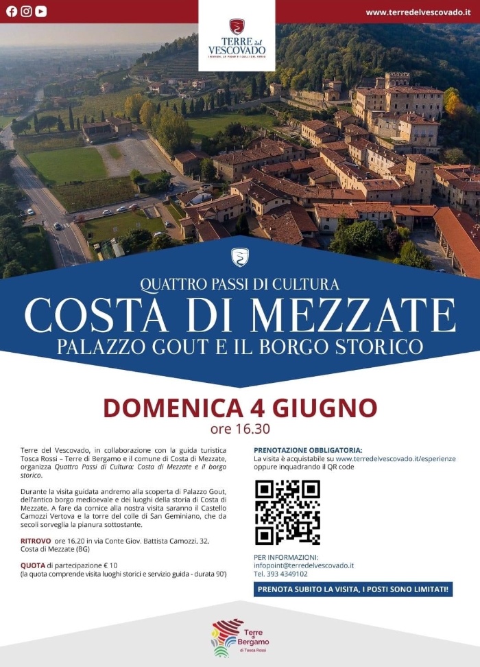 Terre del Vescovado, in collaborazione con la guida turistica Tosca Rossi – Terre di Bergamo organizza "Quattro Passi di Cultura: Costa di Mezzate e il borgo storico".