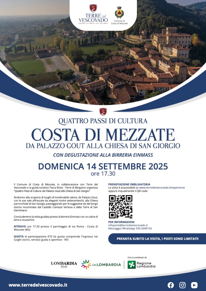 Il Comune di Costa di Mezzate, in collaborazione con Terre del Vescovado e la guida turistica Tosca Rossi - Terre di Bergamo, organizza