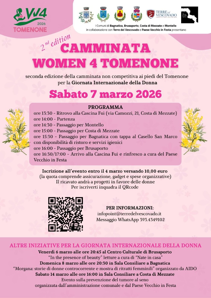 Torna la camminata non competitiva ai piedi del Tomenone, orgnaizzata per la Giornata Internazionale della Donna.